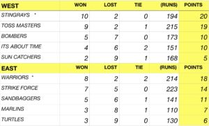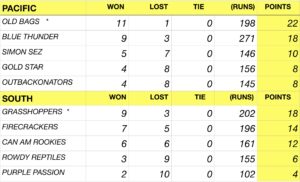 Final Regular season standings for the Wednesday night South league after games played on February 25. The March Madness Tournament begins on Wednesday, March 4. Tournament schedule will be posted on Sunday, March 1.