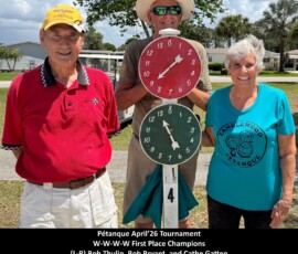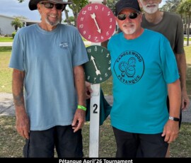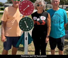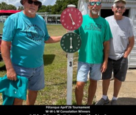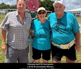 On April 4th, 2026, we held our Pétanque Tournament with Forty-Eight players. During intermission players were served hotdogs, chips, and water.