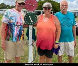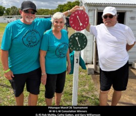 On March 7th, 2026, we held our Pétanque Tournament with Forty-Eight players. During intermission players were served hotdogs, chips, and water.