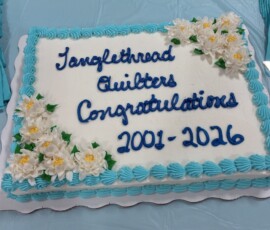 One of, if not the longest lived groups in Tanglewood has got to be the Tanglethread Quilters. From a group of four ladies in the Outback to today, they have never stopped creating works of fabric art, instructing newbies, helping each other with problems, and just plain having fun. This year they celebrate their Silver Anniversary.