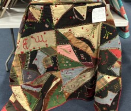 So many different kinds of quilts were displayed at today’s quilt show. There were the beginners’ Rail Fence quilts, collages, paper pieced, and of course, patchwork. You could see modern works of art and a Crazy Quilt dated 1904! There were displays of handbags, totes, small wall hangings, ornaments, you name it, someone has made it.