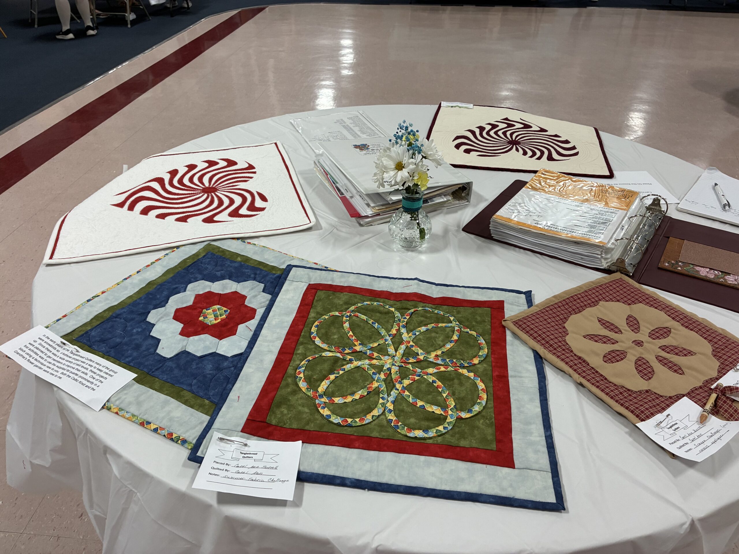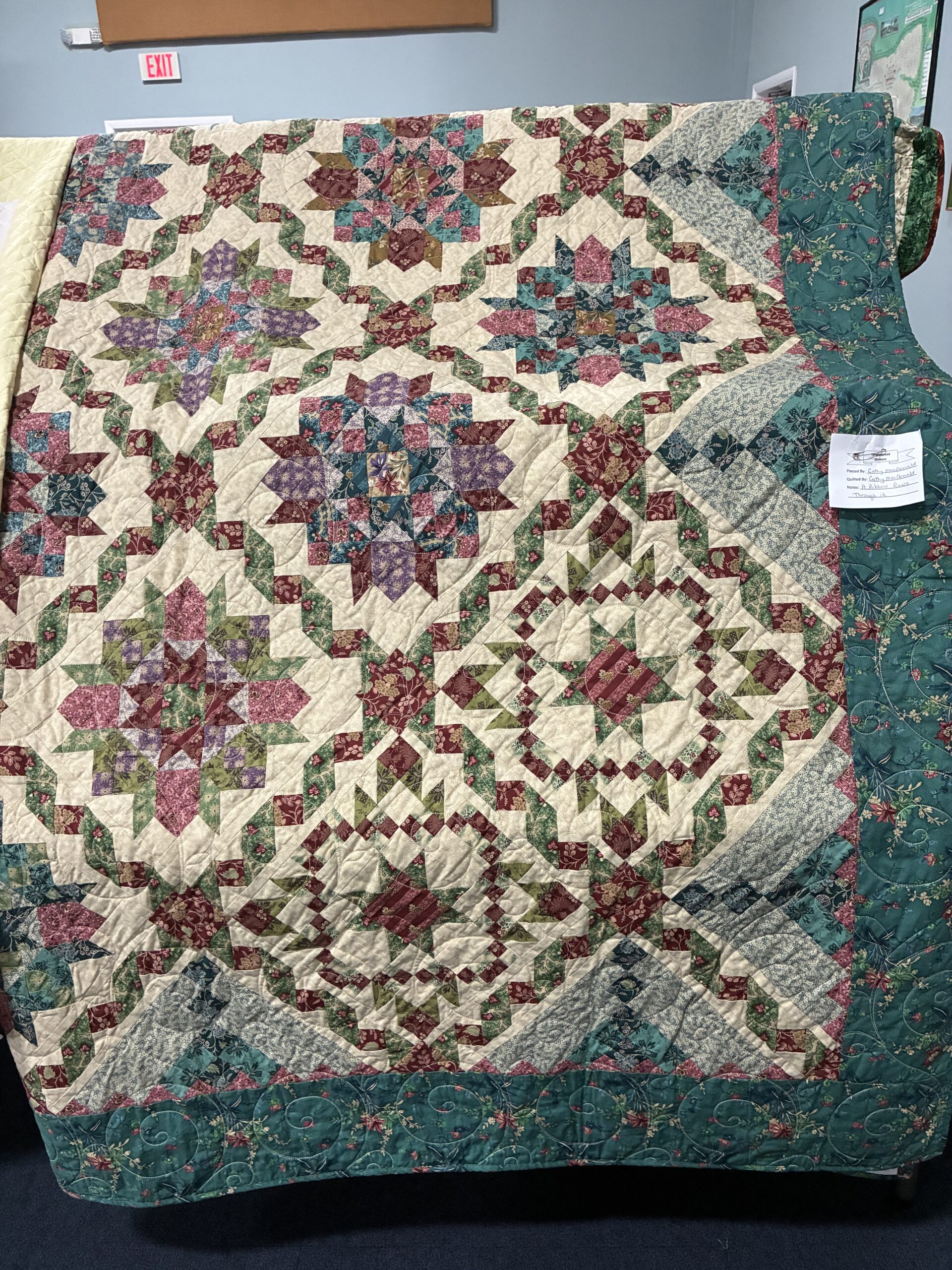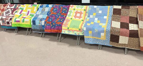 This year’s Co-chairs are Barb Deck and Marie Hittinger. Today’s extravaganza was organized by Mary Ann Scharmberg, with the help of the entire cohort. Special thanks to the husbands and others who set up the tables and chairs for displaying the quilts.