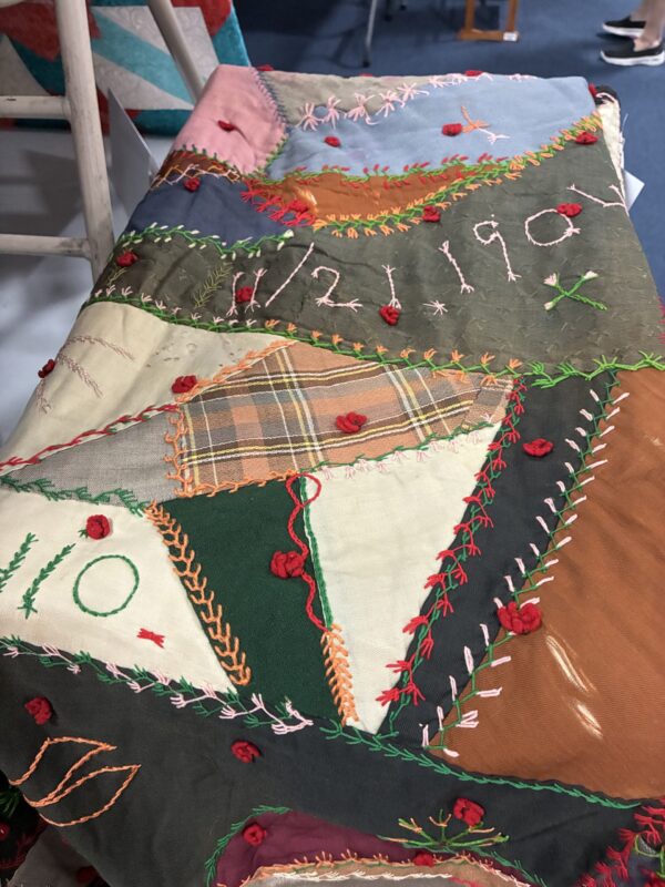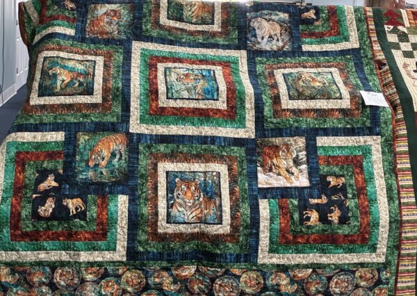 So many different kinds of quilts were displayed at today’s quilt show. There were the beginners’ Rail Fence quilts, collages, paper pieced, and of course, patchwork. You could see modern works of art and a Crazy Quilt dated 1904! There were displays of handbags, totes, small wall hangings, ornaments, you name it, someone has made it.