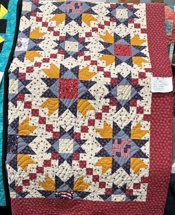 At this time there are 27 active quilters in the group. They meet every Wednesday morning in the Craft Room, and there is always room for new members. They welcome experienced sewists, as well as those who haven’t looked at a hunk of fabric since 7th grade Home Ec. Men are invited too.